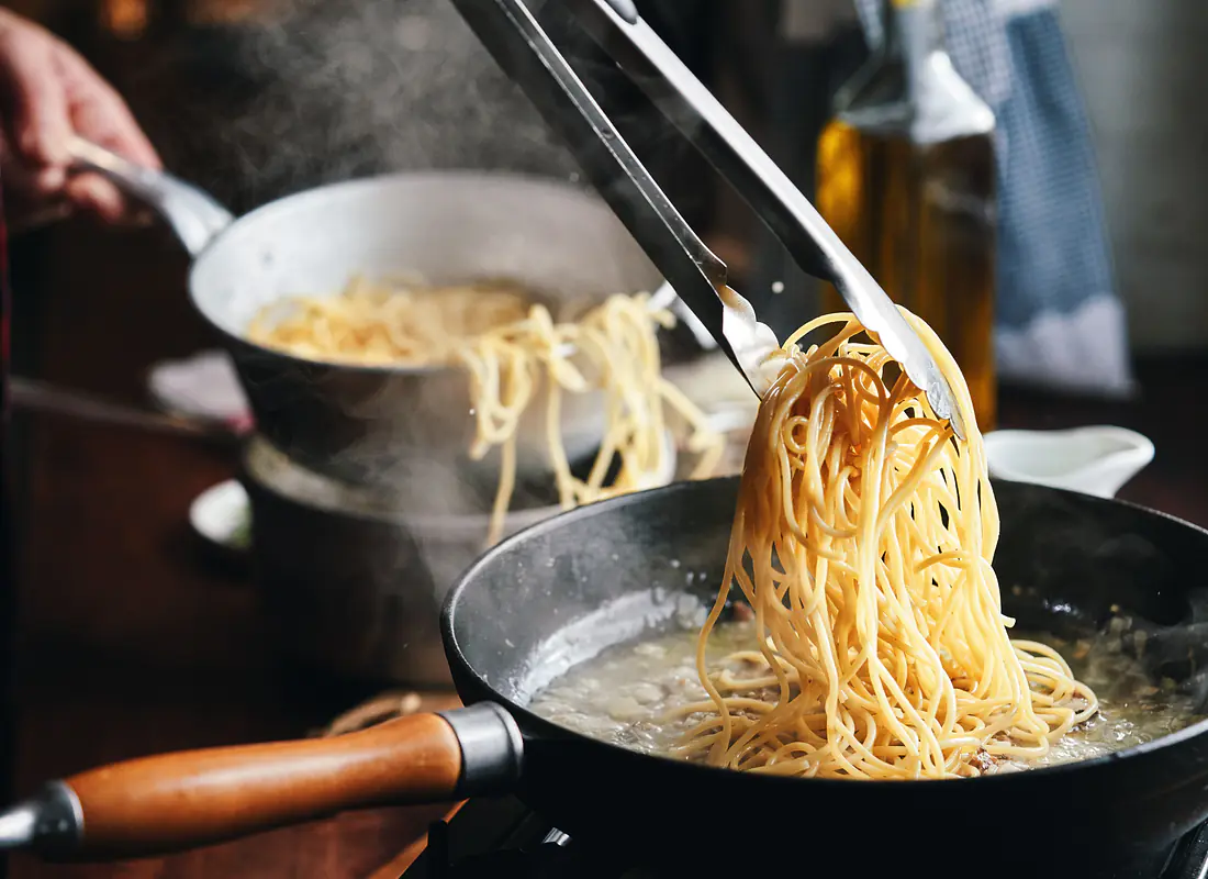 Que ce soit avec de la sauce tomate, de la viande hachée, du poulet, du tonno, du pesto, de la sauce à la crème, de l'aromate ou simplement nature : les spaghettis calment les nerfs, remplissent le ventre et fonctionnent toujours - même quand rien d'autre ne va. Merci, Karin - et merci, Spaghetti !